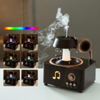بخور سرد و آروما دیفیوزر طرح گرامافون مدل Raindrop یک دستگاه خاص و دکوراتیو با طراحی وینتیج، نورپردازی LED و قابلیت پخش قطرهای بخار مانند باران است که همزمان رطوبت محیط را تنظیم کرده و با رایحههای معطر، فضایی آرامشبخش ایجاد میکند. این دستگاه برای اتاق خواب، میز کار، کافیشاپ و دکوراسیونهای خاص انتخابی فوقالعاده لوکس محسوب میشود.