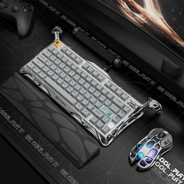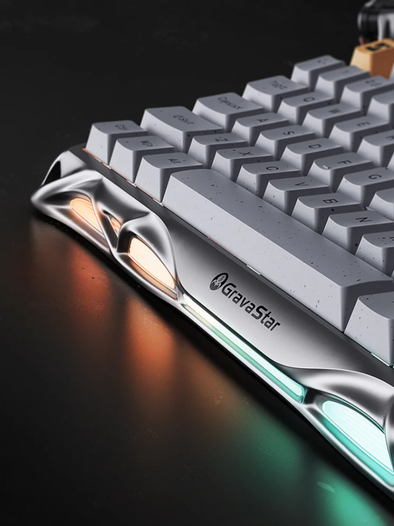 کیبورد گیمینگ GravaStar Mercury K1 Pro در رنگ خاص Silver Gray ترکیبی از طراحی آیندهنگر صنعتی و عملکرد حرفهای برای گیمرهاست.