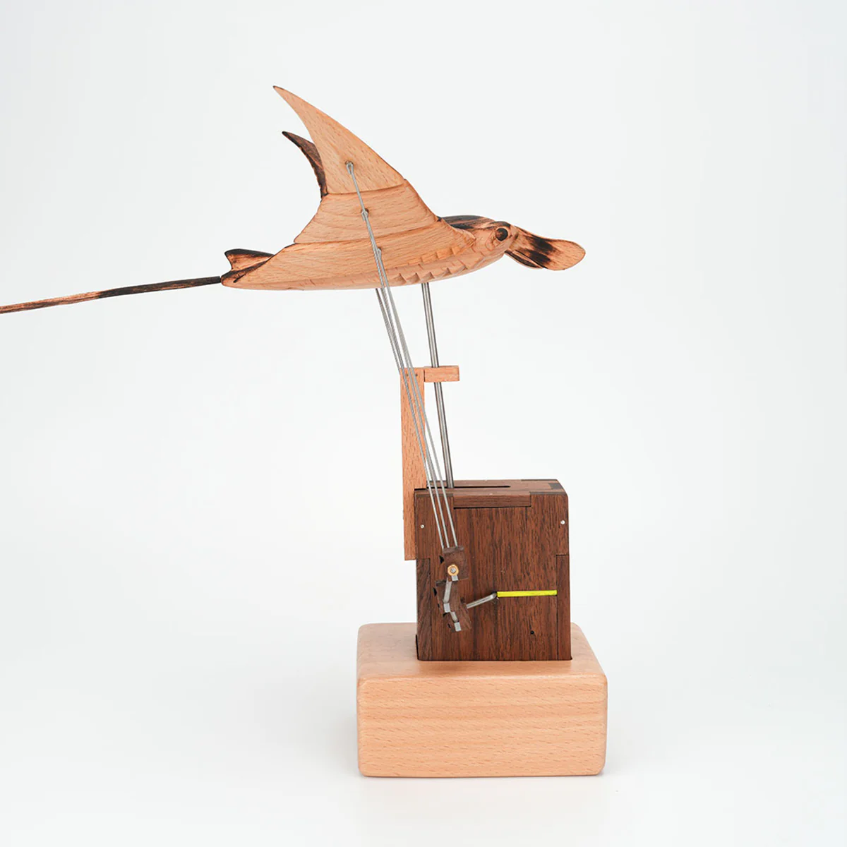 این اتوماتون چوبی با دست ساخته شده از چوب گردوی آمریکای شمالی و راش اروپایی است؛ دو چوبی که به خاطر گرما، استحکام و زیبایی طبیعی‌شان انتخاب شده‌اند. با الهام از ظرافت آرامِ زندگی اقیانوس، هر قطعه حرکت را به شعر تبدیل می‌کند و آرامش و لمسِ دریا را به هر فضایی می‌آورد.