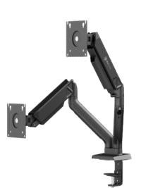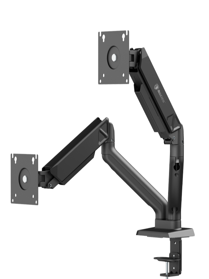 این بازوی تمامفلزی با سیستم چشمه گاز قابل تنظیم (Gas Spring)، پشتیبانی از دو مانیتور تا اندازه ۳۲ اینچ و وزن ۱۸ کیلوگرم را فراهم میکند.