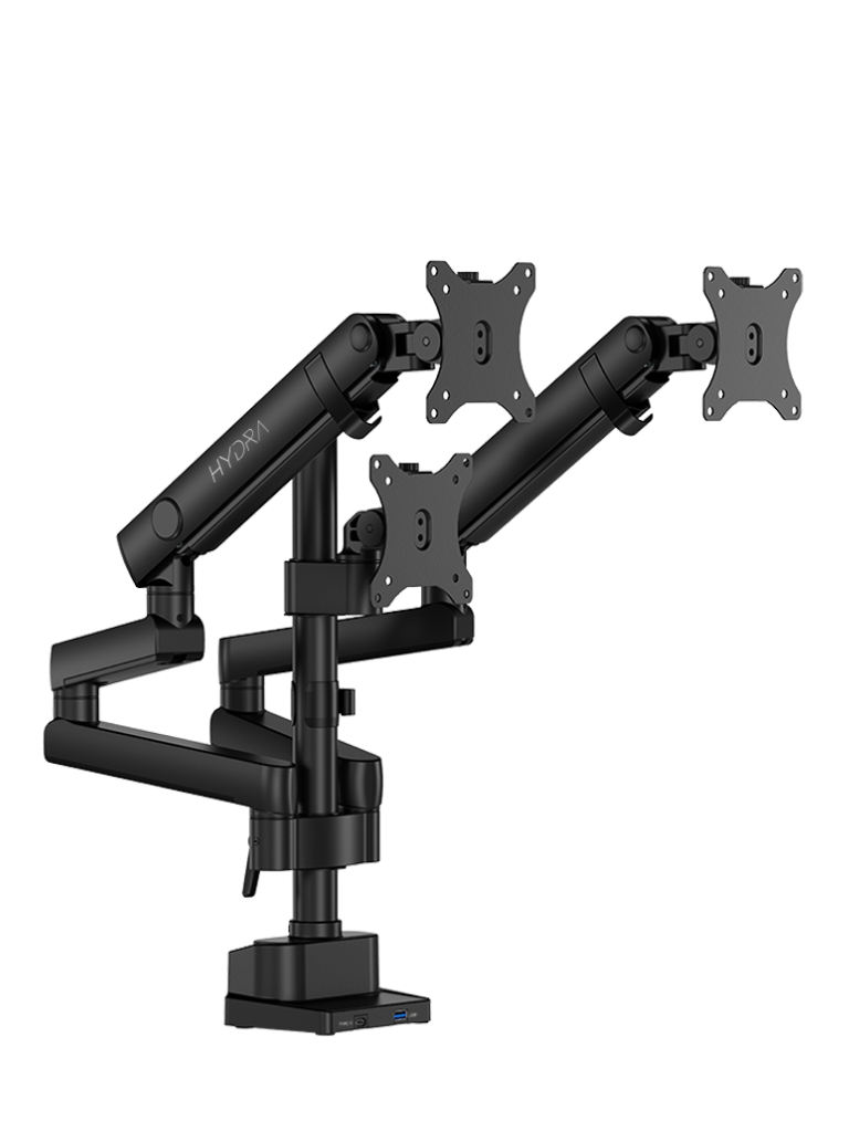 این بازوی قدرتمند با طراحی صنعتی مدرن، قابلیت پشتیبانی از سه مانیتور تا اندازه ۲۷ اینچ را دارد و با ساختار آلومینیومی مستحکم، آزادی کامل در تنظیم زاویه، ارتفاع و چرخش مانیتورها را در اختیار شما میگذارد.